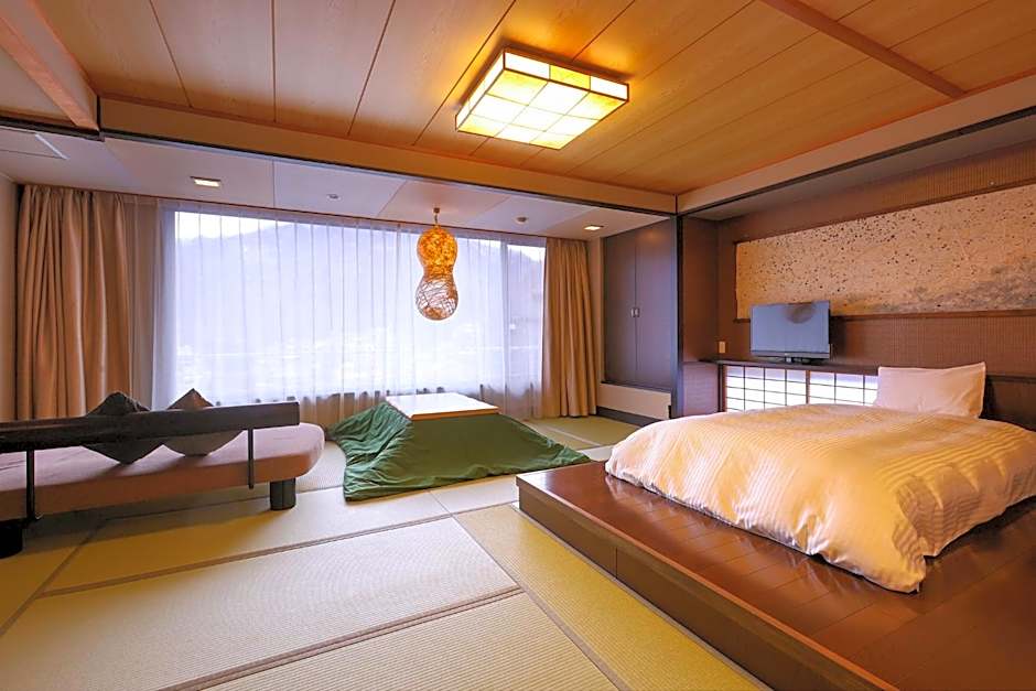 The spacious air-conditioned quadruple room provides a flat-screen TV, tatami, a safe deposit box and an electric kettle. The unit offers 2 beds and 2 futons.